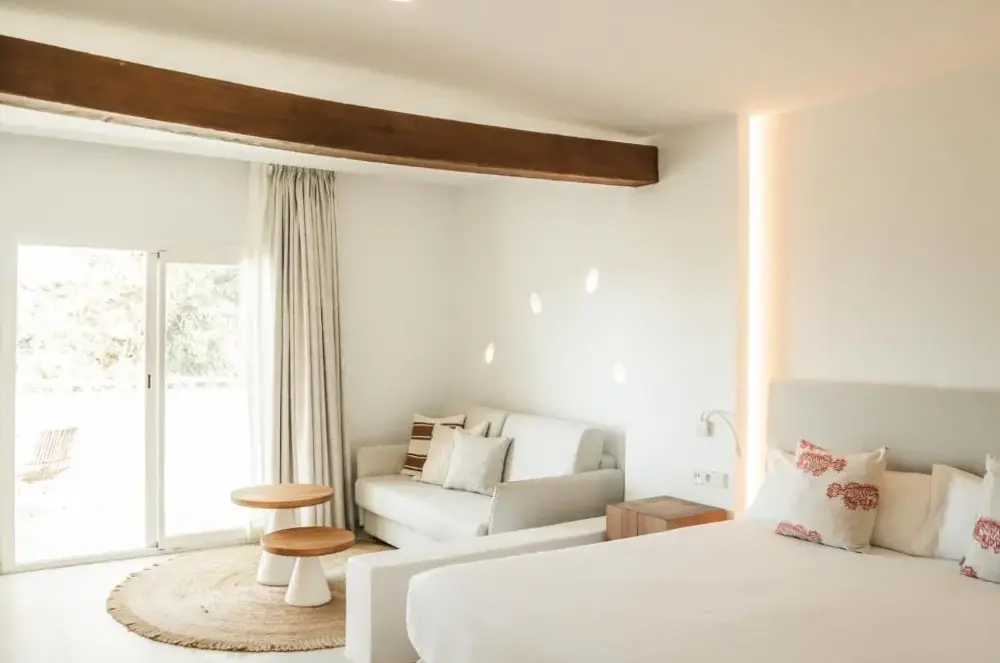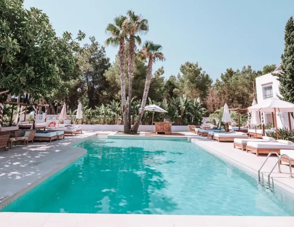 Hotel Boutique & Spa Las Mimosas Ibiza offers comfortable accommodations in Bahía de San Antonio, Spain. The property features free parking, a bar, restaurant, and outdoor swimming pool. Guests can enjoy breakfast and utilize tea/coffee makers in all rooms. Non-smoking rooms ensure a clean environment. Nearby attractions include Es Pouet Beach at 650 meters, Cala Pinet Beach within 750 meters, and San Antonio Beach just 1.1 kilometers away. Additional nearby points of interest are Sol Sets Rooftop Nine Ibiza at 650 meters, Cap Blanc Aquarium 2.8 kilometers distant, and Boulevard located 1.2 kilometers from the hotel. The establishment provides an airport shuttle service for convenience.